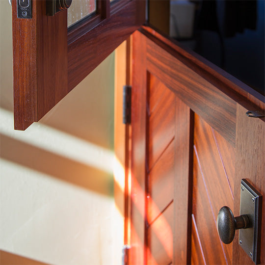 RealCraft Dutch doors stand out because of their unparalleled customization, solid wood construction, and expert craftsmanship. Each Dutch door is hand-made in Gig Harbor, Washington State. Our Dutch doors also come with an exclusive White Oak threshold and silicone sweep system which prevents water damage to the jamb.